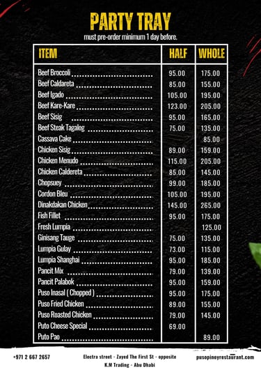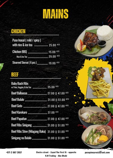 Join us at Puso Pinoy Restaurant for an authentic Filipino dining experience in Abu Dhabi.